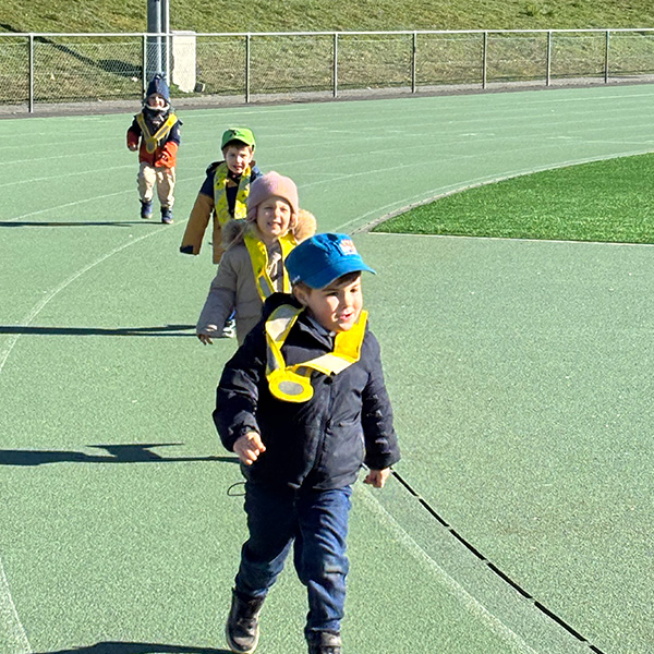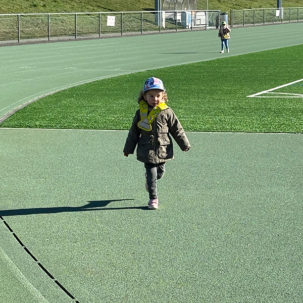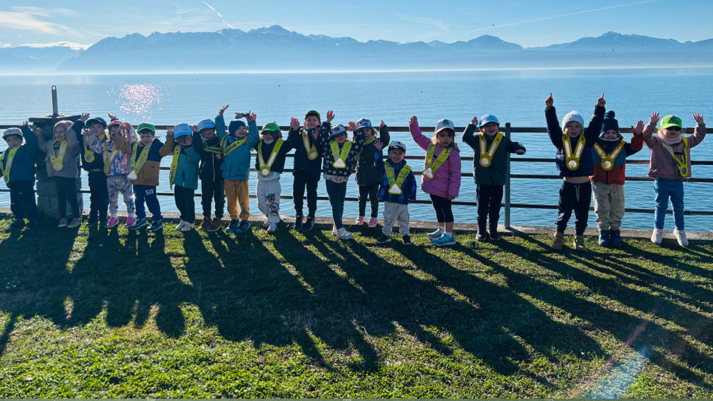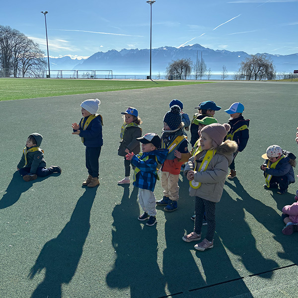 Mardi 24 février 2026, le groupe s’est élancé à pied depuis la crèche en direction du stade de l’UNIL, en longeant le bord du lac. Une marche active qui prépare déjà le corps à l’effort.