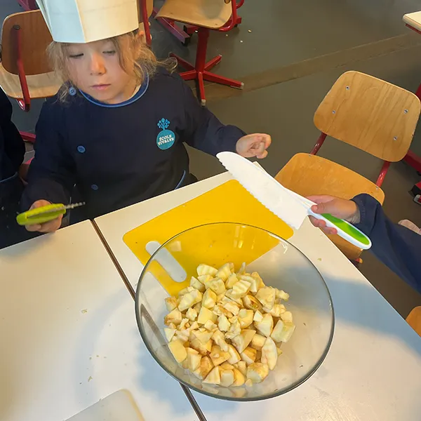 Une belle initiation à la cuisine pédagogique, qui stimule la motricité fine, la curiosité sensorielle et la coopération.