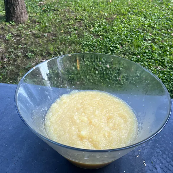 Résultat : une délicieuse compote dorée, légèrement sucrée, partagée dans la joie et la fierté du travail accompli.