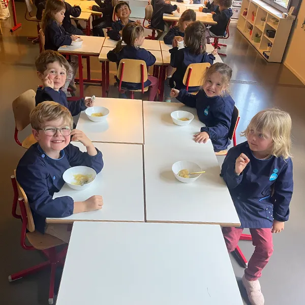 Chaque élève a coupé de petits morceaux, observé la cuisson, puis participé au mixage avant la dégustation finale.