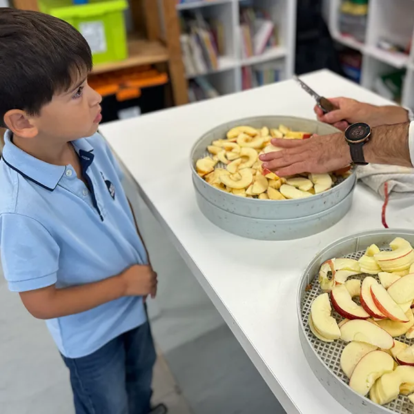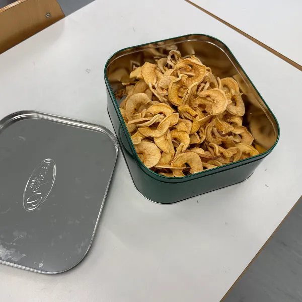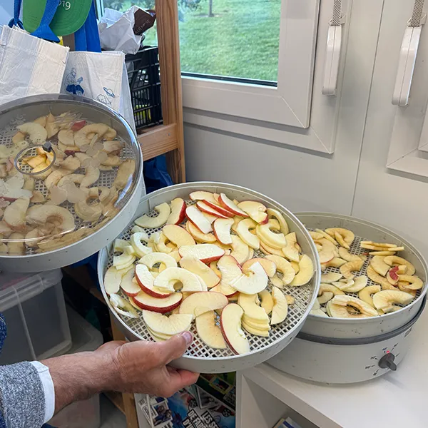 Les élèves de 3A, quant à eux, ont transformé leur cueillette en rations de pommes séchées pour leur futur camp d’hiver en autarcie.