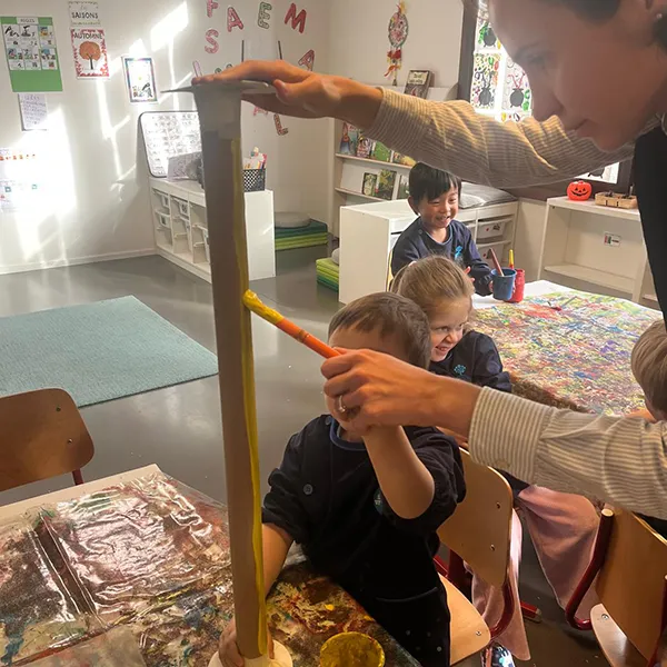 Cette activité artistique et sensorielle a offert aux enfants un moment de découverte, de manipulation et de coopération dans un cadre chaleureux.