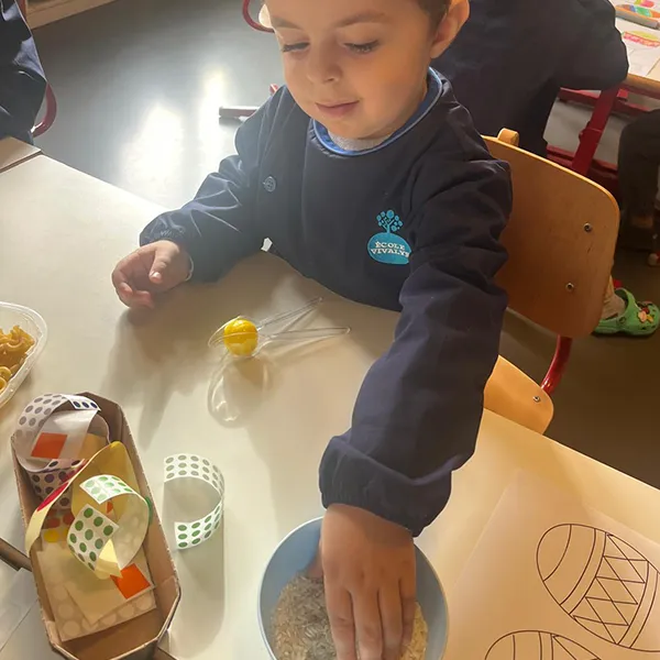 Après la réalisation d’un premier instrument — un bâton de pluie — les enfants de la classe 1B et de la Petite Section de la crèche Le Microcosme (Lausanne – Maladière) ont poursuivi leurs explorations sonores avec la création d’un second instrument : les maracas.