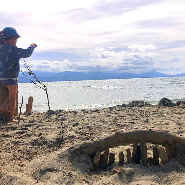 De retour sur la plage, entre châteaux de sable, créations de land art avec les éléments naturels et scènes de théâtre en plein air, la journée s’est poursuivie dans un esprit de jeu et de créativité.