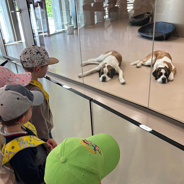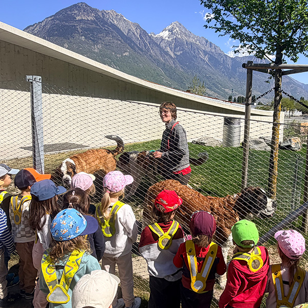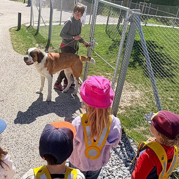 Les enfants ont appris que ces chiens emblématiques accompagnaient autrefois les chanoines du col du Grand-Saint-Bernard pour secourir les voyageurs en montagne.