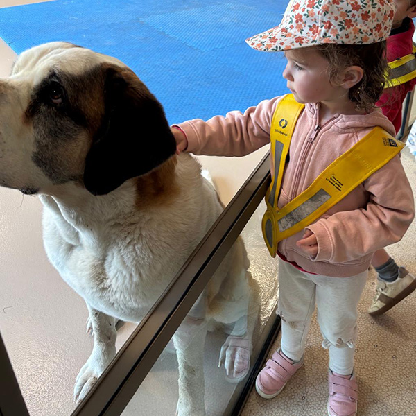 Toucher, observer, ressentir… cette rencontre avec les Saint-Bernard devient un moment fort, chargé d’émotions.