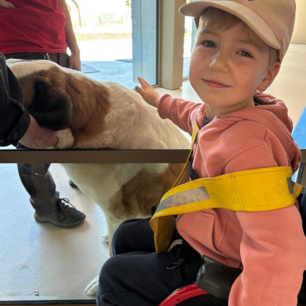 Sortie scolaire Barryland : enfants et Saint-Bernard