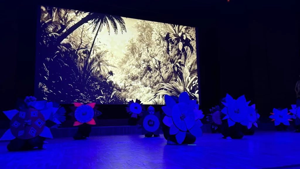 Dès les premières secondes, une introduction immersive plonge le public au cœur de la jungle indienne. Les enfants de la Petite Section des Petits Acrobates ouvrent alors la soirée avec un tableau délicat : la danse des fleurs, véritable moment de douceur où les couleurs, les costumes et la musicalité donnent le ton de la représentation.