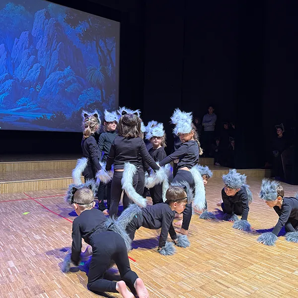 Les élégants Vautours de la classe de 1re année A offrent ensuite un tableau étonnant, précis et aérien, avant de laisser place à une scène dramatique : la confrontation entre Shere Khan et Mowgli (3e année B), portée par le mythique thème musical de Rocky. Un final intense, théâtral et maîtrisé. .