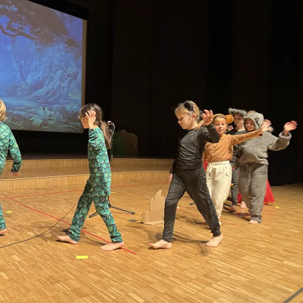 Les 6e années prennent ensuite le relais avec une énergie remarquable. Leur sens du rythme, leur présence scénique et la qualité de leur narration installent les fondations de l’histoire de Mowgli, captivant instantanément le public.